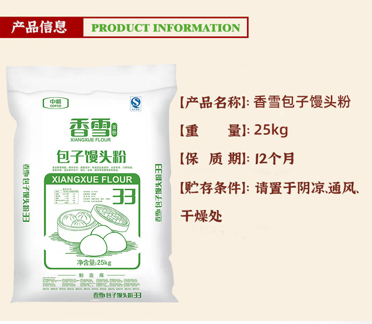 中粮香雪包子馒头粉白面25kg*1袋面条馒头早餐包子烙饼粉团购批发
