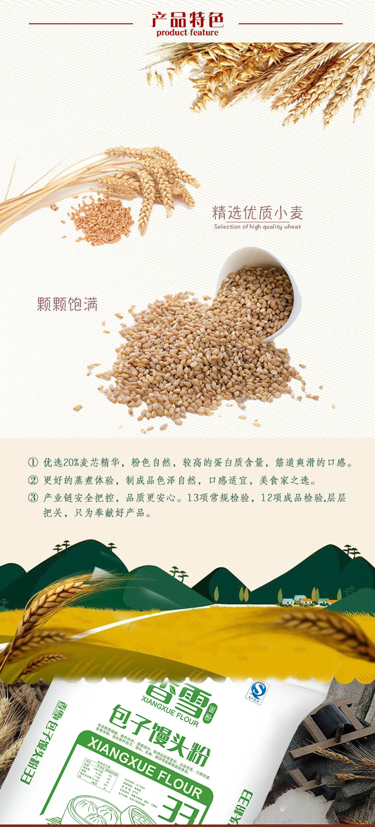 详细信息 商品属性 品牌香雪 是否进口否 原产地河南 售卖方式包装 原料与配料小麦 净含量(规格)25000(g) 特产否 保质期365(天) 生产许可证编号SC10141019300022 面粉种类饺子粉 适用场景家用 储存条件常温